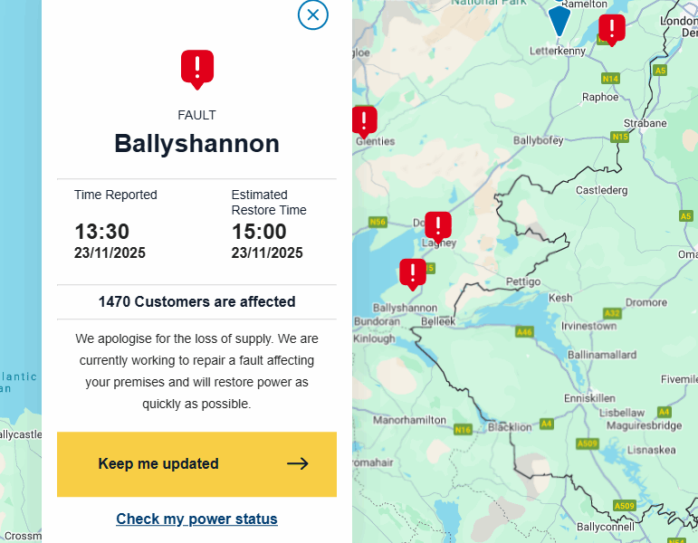 More than 1,500 customers in Donegal are currently without electricity due to multiple faults in the power network. The issues have prompted crews from ESB Networks...