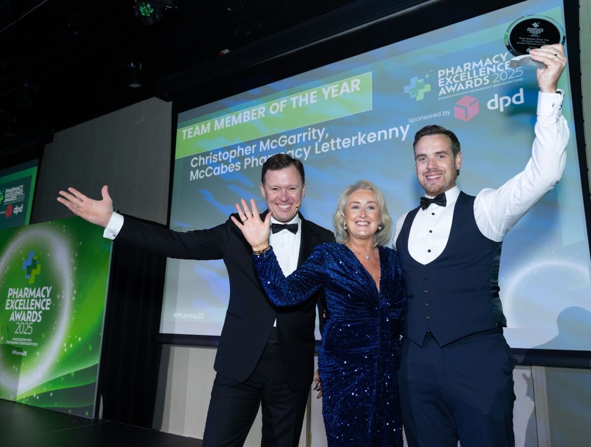 McGarrity, who is part of the team at McCabes Pharmacy in Letterkenny, received his award from the evening’s host, Anton Savage. This accolade highlights his exceptional service and commitment to the pharmaceutical community, underscoring the vital role pharmacy professionals play in healthcare.