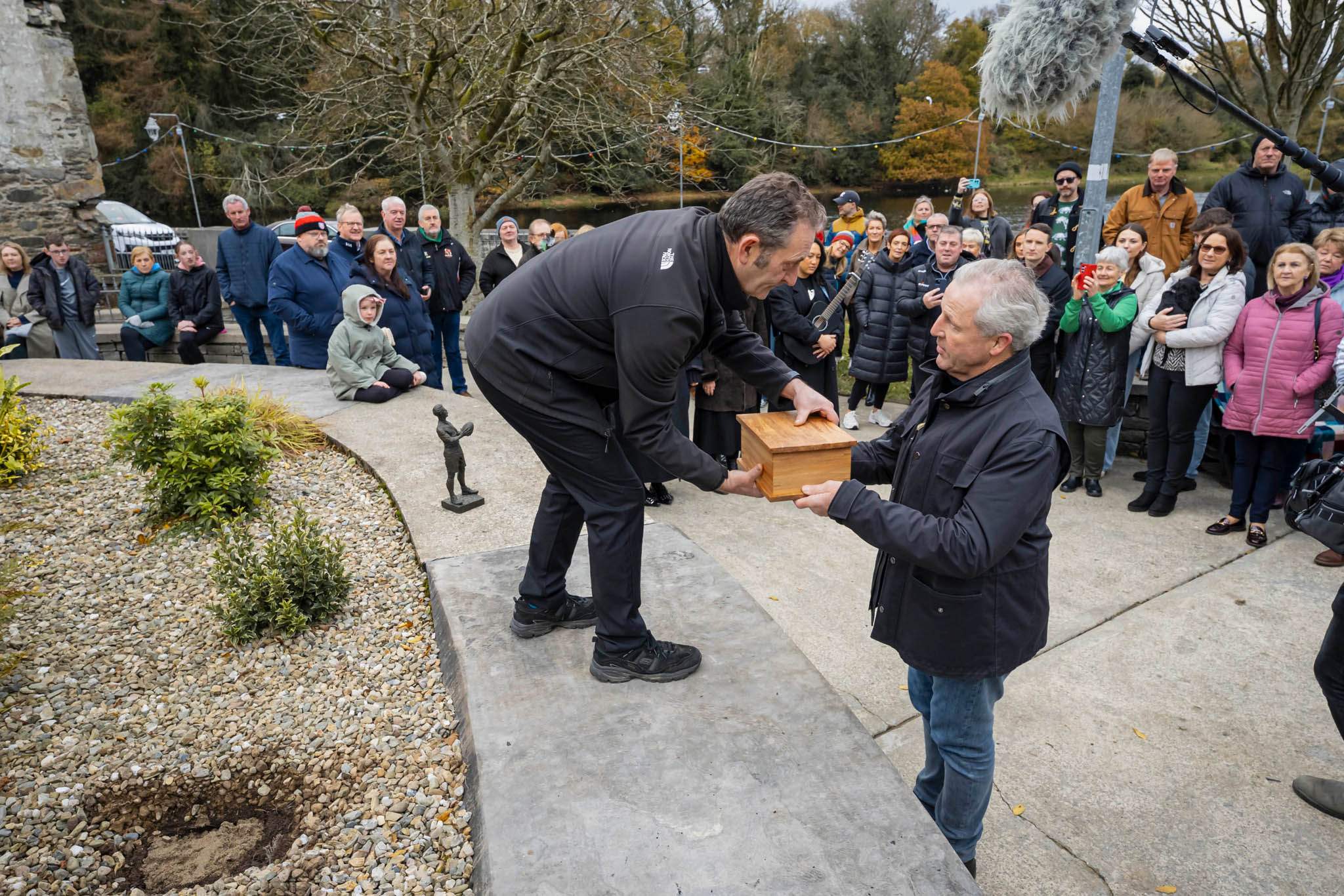 “We can’t know for sure, but had he lived, he may have returned to visit his birthplace here in Ramelton,” stated Kevin Shields from the Dave Gallaher Society. “Today we honor his Irish roots by placing soil from New Zealand here at the park named in his honor.”