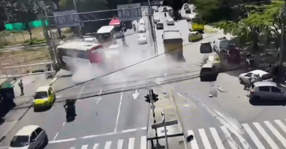 A runaway dumper lorry, loaded with a staggering 17-tonnes, caused widespread chaos on a highway after losing its brakes and colliding with 12 vehicles, including a...